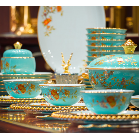 Jingdezhen Underglaze Color Porcelain Dinnerware Set (48-Piece)